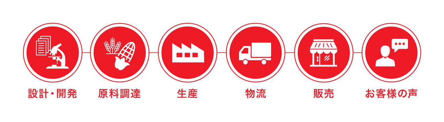 私たちは、安全性については妥協することなく可能な限りの調査、研究を尽くし、関連する法規を順守し、常に一定品質の商品やサービスをお届けします。