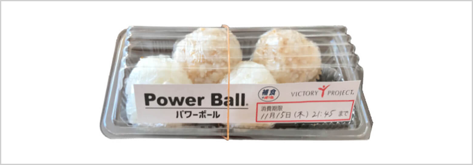 「パワーボール®」とは、小ぶりで食べやすい「ほんだし®」を使ったおにぎり。「試合前にエネルギーを補充したいが、緊張して食欲がわかない」「試合間の時間が短くて食べられない」などのアスリートのリクエストに応えて、味の素社が開発しました。