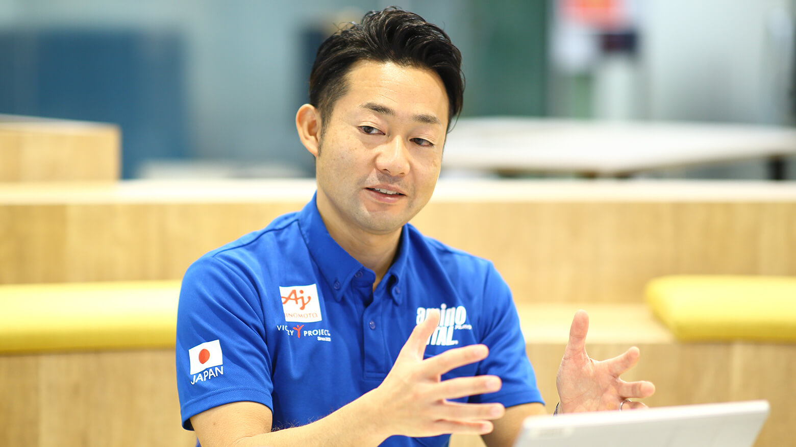 大学時代はアメリカンフットボール部で活躍。いちプレイヤーとして「アミノバイタル®」を愛用。2008年、味の素株式会社入社。8年間、九州や東京の大手エリアで家庭用商品の営業として精力的に活動。「いつかスポーツに関わる仕事を」という想いから、2016年に「ビクトリープロジェクト®」メンバー公募に手を挙げる。現在はブレイキン、バドミントンをはじめ、数々のアスリートたちをサポートする、プロジェクトのリーダー。2017年から渡部暁斗選手の栄養戦略を担当。