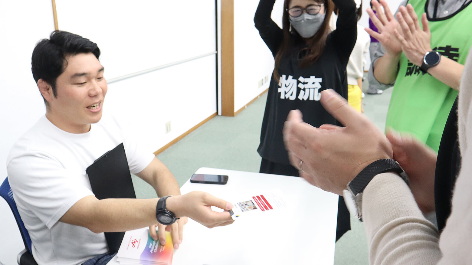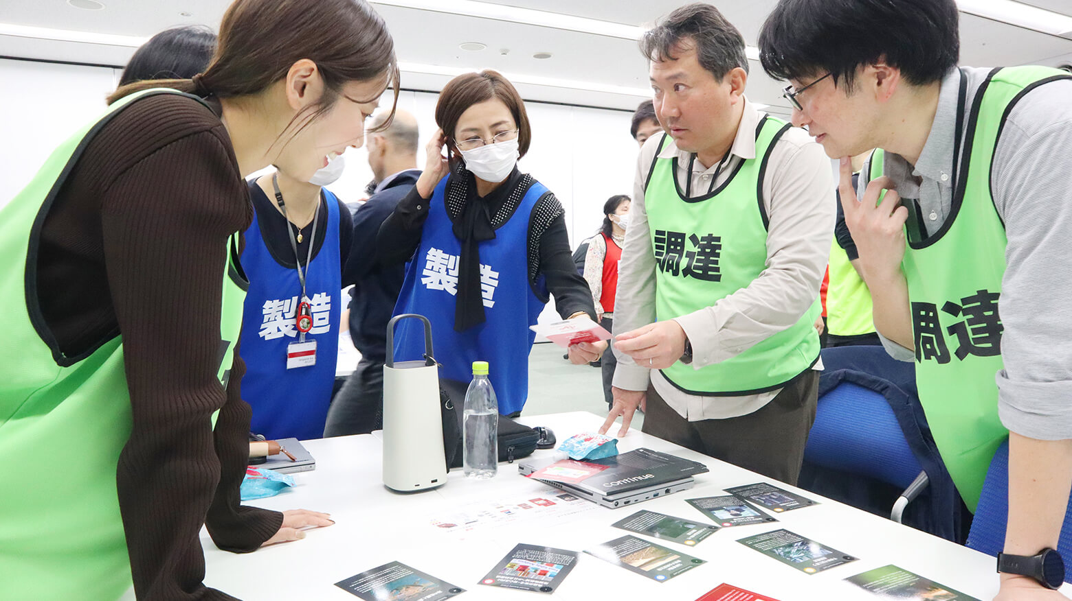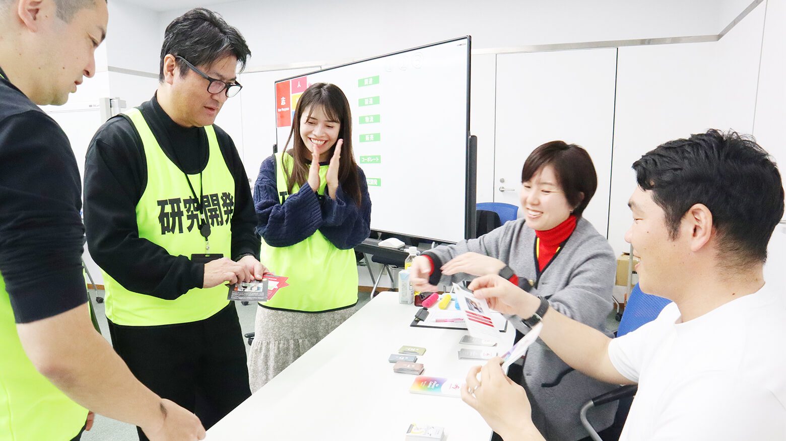 必要なカードが手元にない場合は、ほかのチームに協力を求めても構いません。そのため、佳境に近づくと、カードや情報を求めて、参加者たちがわいわいと会場を行き来する展開に。一般的な社員研修ではまず見られない、にぎやかで活気のある光景です。