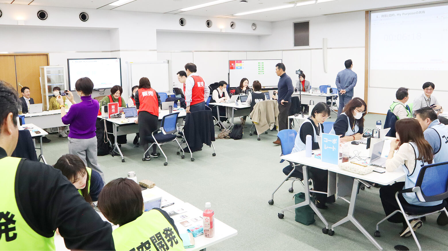 「Our Philosophyチャレンジ」では、参加者自身の工夫でシミュレーションの内容もどんどん進化していきます。この日も参加者の自発的なアクションによって6つの部門がまとまりを見せていく工夫が生まれました