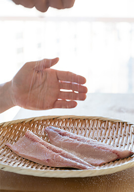 事前に切り身に「塩」と「酒」をふりかけておくと、いやな生臭さを抑えてくれます。