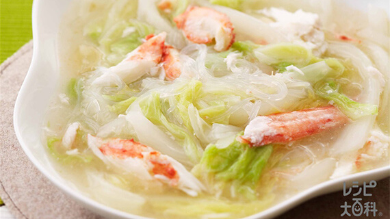 カニに含まれるビタミンB12やタウリンは、水に溶けやすい性質を持っているので、スープや鍋をはじめ、ゆで汁をそのまま使う料理がおすすめです。