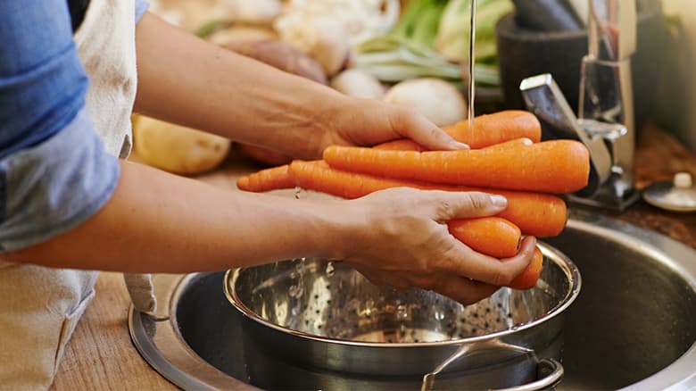 βカロテンは、にんじんの皮にも多く含まれるため、できるだけよく洗って皮つきのまま使うか、薄くむくようにしましょう。皮には食物繊維も多く含まれます。