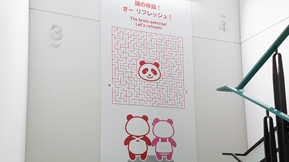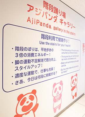 ・本社の非常階段は「アジパンダ®ギャラリー」になっている。